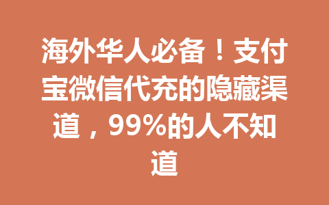 海外华人必备!支付宝微信代充的隐藏渠道,99%的人不知道