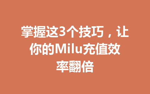 掌握这3个技巧,让你的Milu充值效率翻倍
