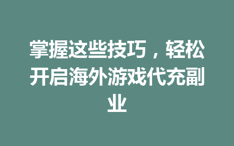 直接回答你最核心的问题:海外游戏卡可以代充吗? 答案是:可以,但水很深,你必须得知道怎么选。这就像找代购,有正经做生意的,也有一锤子买卖骗完就跑的。代充的本质,就是有人帮你用当地的支付方式(比如日本的信用卡、美国的PayPal、Google Play礼品卡)给你的游戏[……]