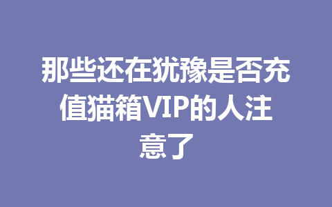 那些还在犹豫是否充值猫箱VIP的人注意了