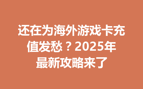 还在为海外游戏卡充值发愁?2025年最新攻略来了