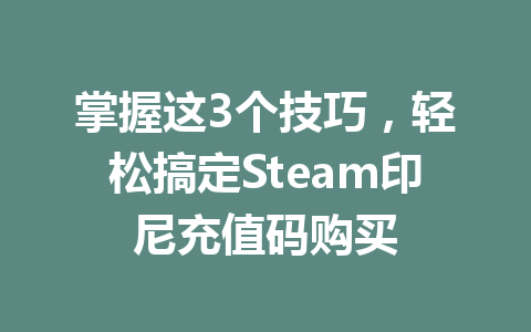 掌握这3个技巧,轻松搞定Steam印尼充值码购买