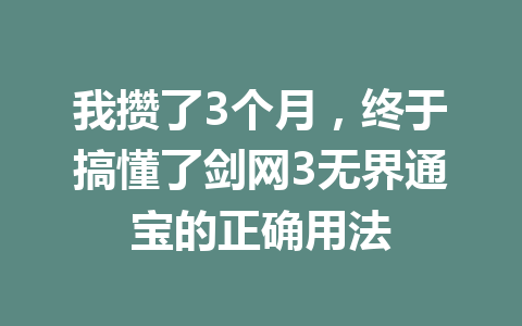 我攒了3个月,终于搞懂了剑网3无界通宝的正确用法