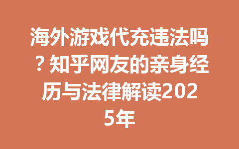 海外游戏代充违法吗?知乎网友的亲身经历与法律解读2025年