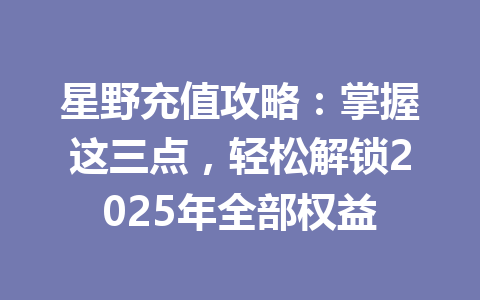 星野充值攻略:掌握这三点,轻松解锁2025年全部权益