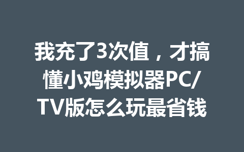 我充了3次值,才搞懂小鸡模拟器PC/TV版怎么玩最省钱