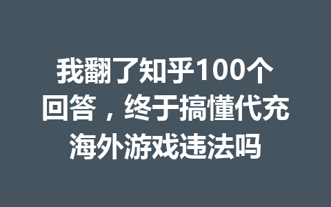 我翻了知乎100个回答,终于搞懂代充海外游戏违法吗