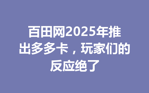 百田网2025年推出多多卡,玩家们的反应绝了