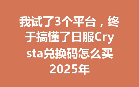 我试了3个平台,终于搞懂了日服Crysta兑换码怎么买2025年