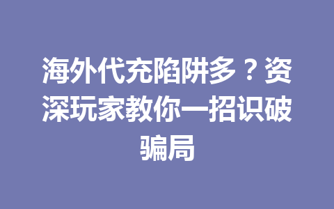 海外代充陷阱多?资深玩家教你一招识破骗局