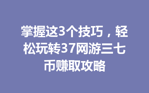 掌握这3个技巧,轻松玩转37网游三七币赚取攻略