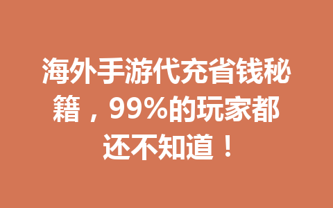 海外手游代充省钱秘籍,99%的玩家都还不知道!