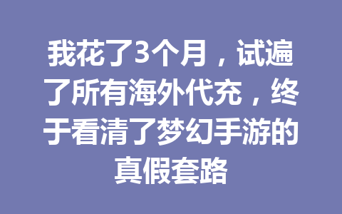 我花了3个月,试遍了所有海外代充,终于看清了梦幻手游的真假套路