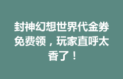 封神幻想世界代金券免费领,玩家直呼太香了!