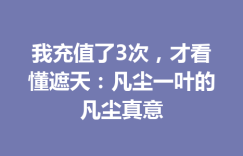 我充值了3次,才看懂遮天:凡尘一叶的凡尘真意 一
