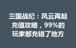 三国战纪:风云再起充值攻略,99%的玩家都充错了地方