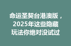 命运圣契台港澳版,2025年这些隐藏玩法你绝对没试过