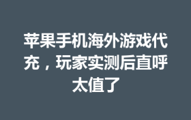 苹果手机海外游戏代充,玩家实测后直呼太值了