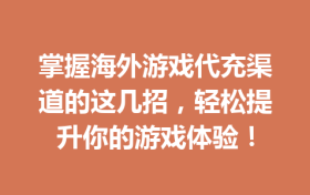 掌握海外游戏代充渠道的这几招,轻松提升你的游戏体验!