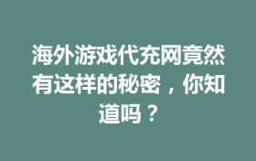 海外游戏代充网竟然有这样的秘密,你知道吗?