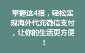 掌握这4招,轻松实现海外代充微信支付,让你的生活更方便!
