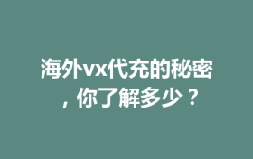 我们将为你分析海外vx代充的多种方式和渠道,帮助你找到最合适的充值方式,以避免高额的手续费和繁琐的过程。 我们…