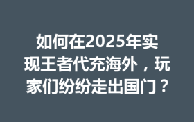 如何在2025年实现王者代充海外,玩家们纷纷走出国门?
