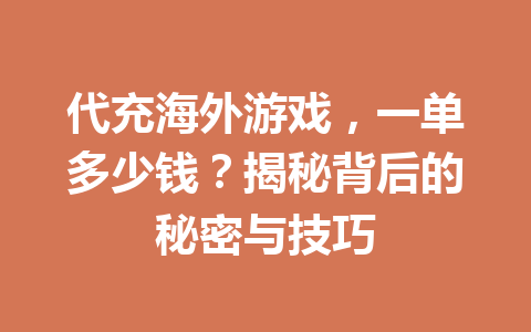 游戏海外代充背后的秘密,竟让玩家疯狂热衷!