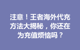 注意!王者海外代充方法大揭秘,你还在为充值烦恼吗?
